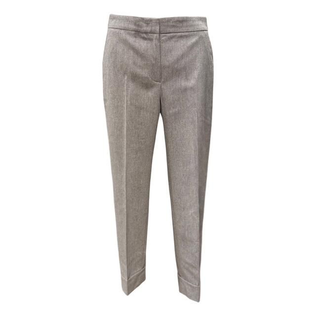 シルエットの基本は、ややゆとりのあるテーパードで、腰から裾までシャープに伸びる直線的なラインと、ウエストのアジャスター、そして太幅のターンナップ(ダブル)など、一つ一つのディテールはクラシカルなのに、女性らしさを表現してくれる美しいモデルです。