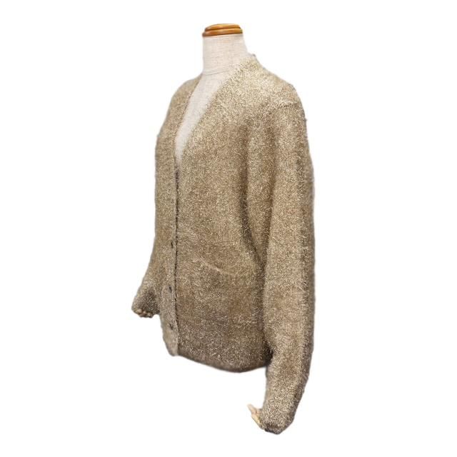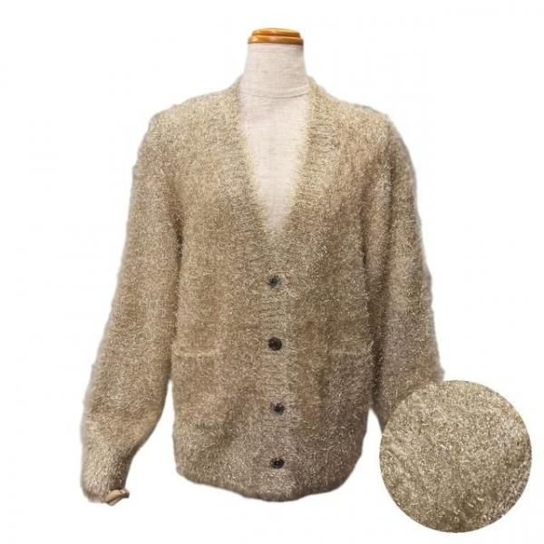 DRAWELL 【ドロウェル】 メタルフィルムヤーン・ニットカーディガン(Gold)