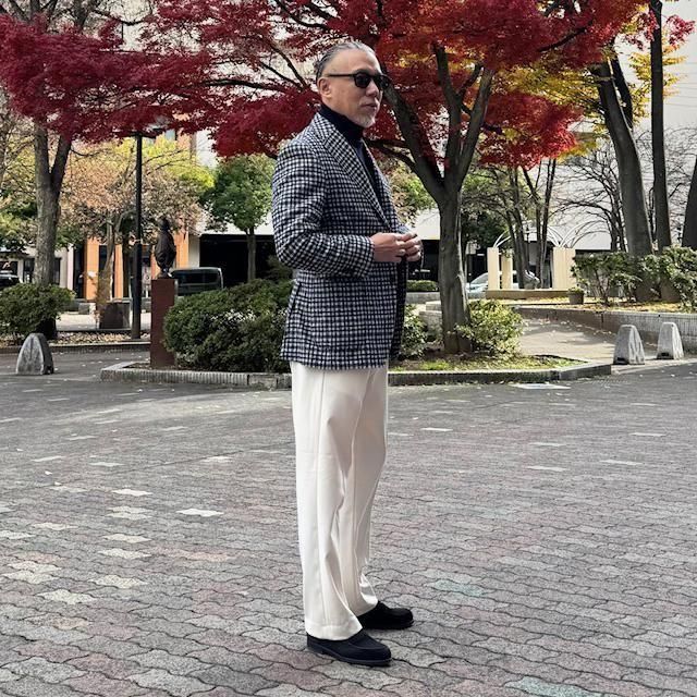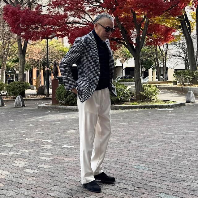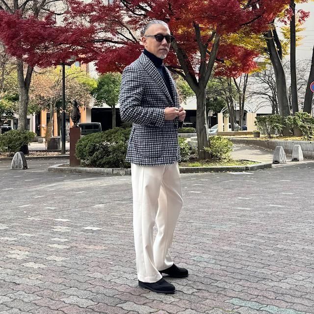 ブランドのテイスト的にはカットソーやニットウェアが似合いますが、このパンツならシャツやジャケットとの相性も抜群。