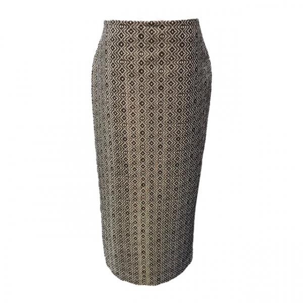このスカートは、基本的な仕様であるバックスリットとウエストバックにエラスティックを採用したロングタイトスカートがベースになっています。