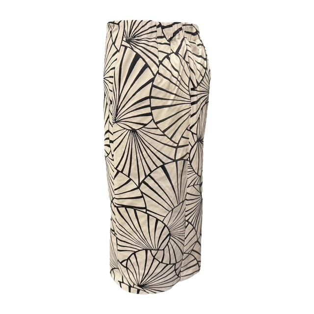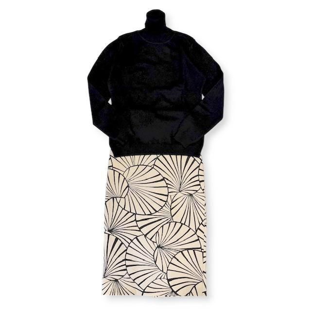 このスカートは、基本的な仕様であるバックスリットとウエストバックにエラスティックを採用したロングタイトスカートがベースになっています。