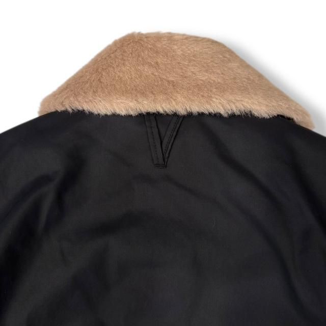このファーにはアルパカやモヘアを混紡した素材が使われており、衿を立て頬にあてているだけでも温もりが伝わって来る柔らかさと暖かさ。