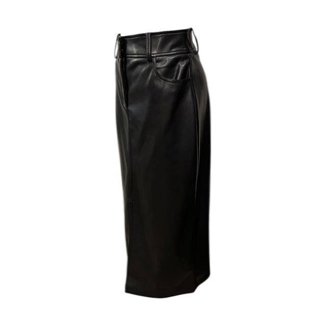 一着持っていると意外に便利なシンセティックレザーのスカート。