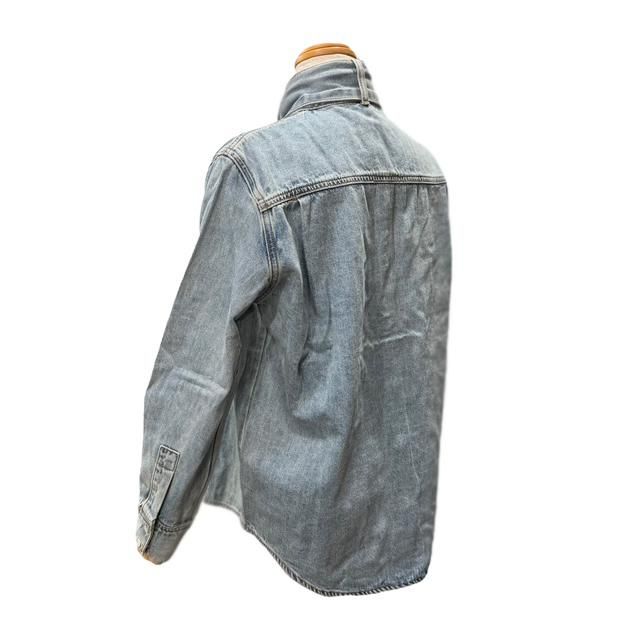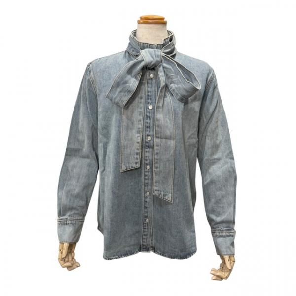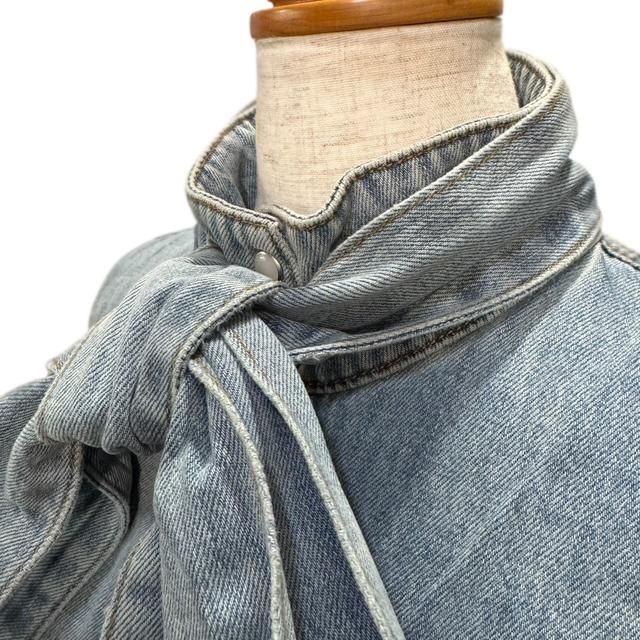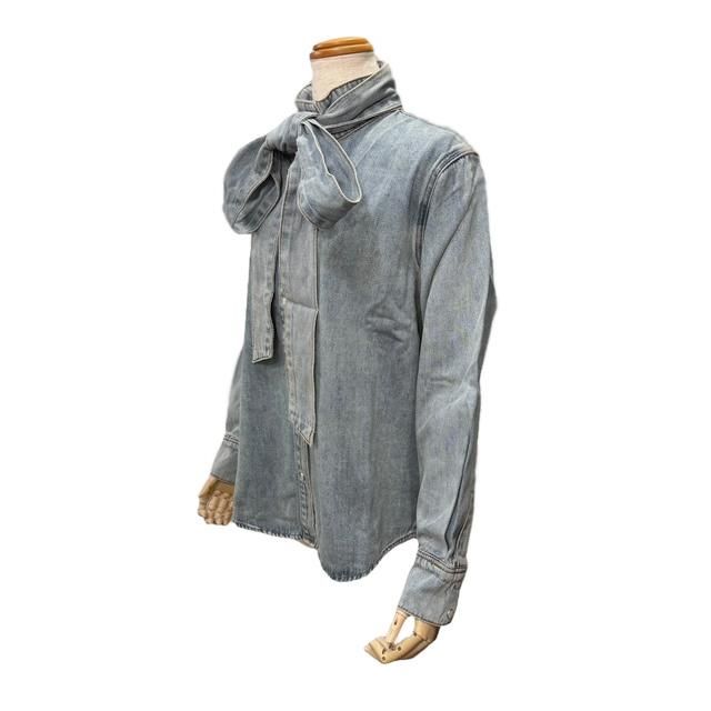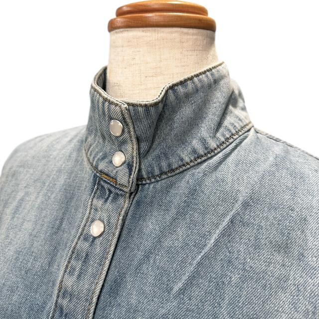 今回のデニム素材のシャツは、ボウタイが付属したウエスタンタイプのスナップボタンを使った一着で、シルエットは身頃をタップリ持たせたオーバーサイズフィット。