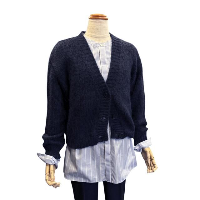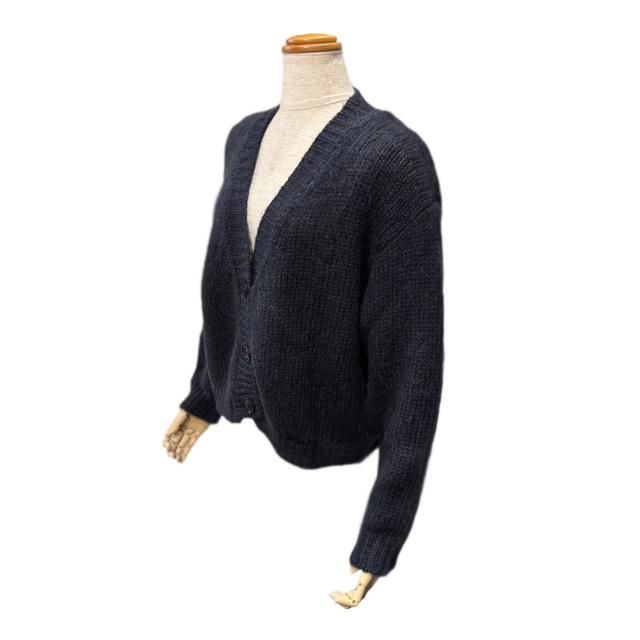 秋冬のニットウェアには素材に凝ったものが多くラインナップされており、このVネックカーディガンもその一つです。