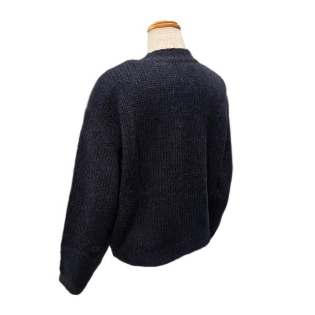 アルパカを主に4種の異なる糸をブレンドし、エアリー感を見せつつ暖かさとボリューム感のある一着に仕上がっています。