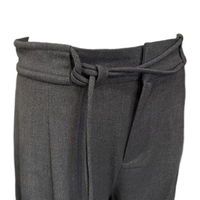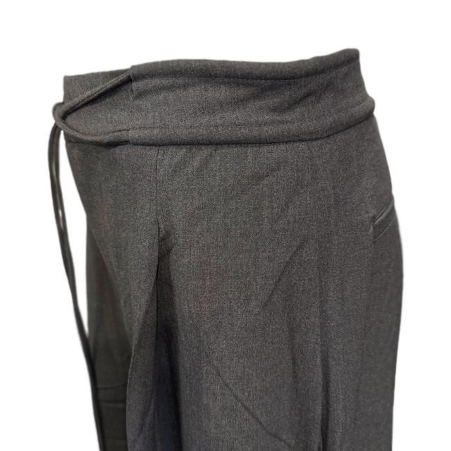 このパンツは見た目はシンプルなワイドパンツですが、ウエスト周りに2本の共地のコードが一周し、右前のループに結び目を作って飾るという新しいディテールのパンツ。