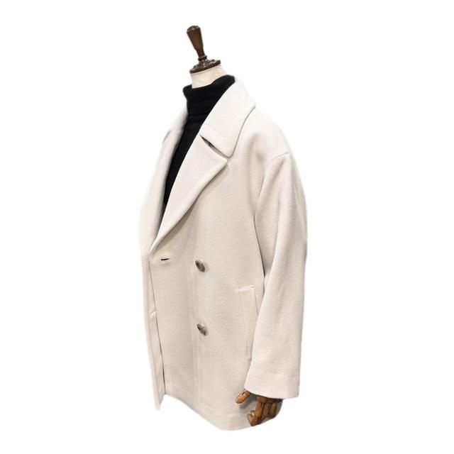 今季のコートは素材のクォリティもさることながら、一見しただけでは分かり辛い非常に凝ったディテール、立体的デザインが取り入れられたピーコートデザインの一着。
