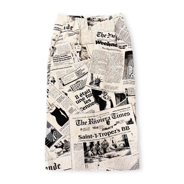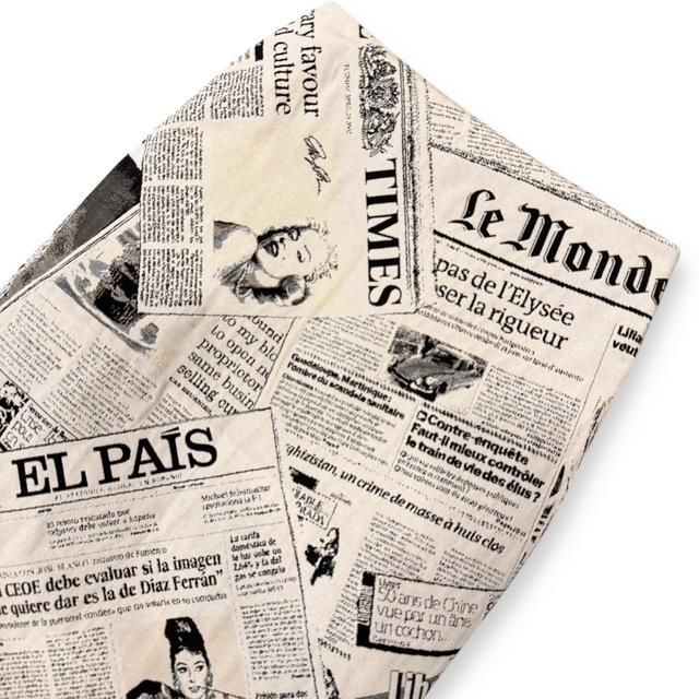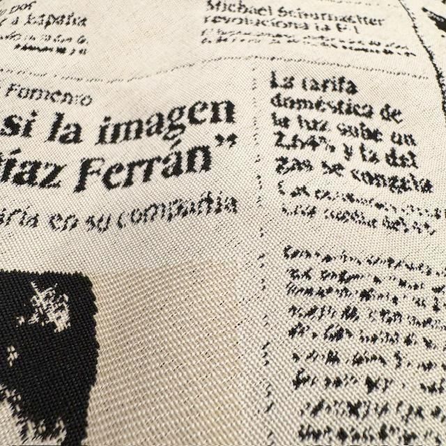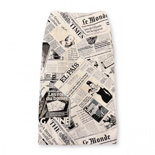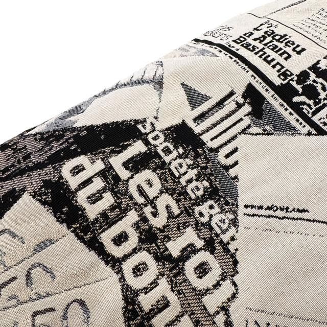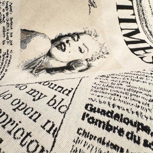 素材はフランス製のファブリックが使用されており、適度なハリと柔らかさを併せ持ったジャカードで、柄は非常に凝った実際の新聞のゴシップ欄をモチーフにしており、マリリンモンローやブリジットバルドー、オードリーヘップバーンなどが非常に細かく表現されています。