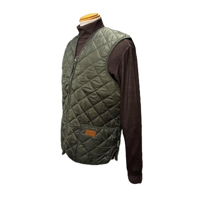 基本はジャケットやコート、ハンティングジャケットなどの内側にライニング代わりに着る為のベストで、ライトウェイトなキルティングを採用し、柔らかさと軽さ、着脱のし易いファスナーを採用したマルチな一着です。