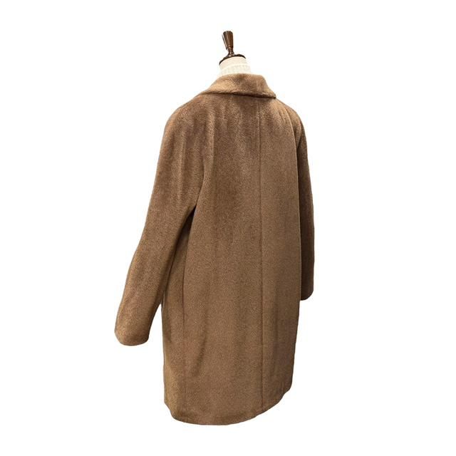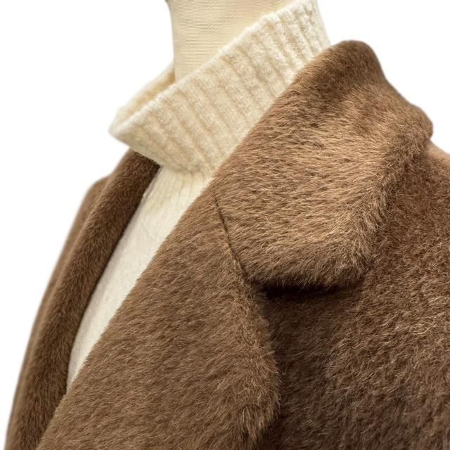 色合いはこれぞMAX MARAと言わんばかりの濃いめのキャメルで、毛足の長さ、艶の影響で、色味に濃淡が生まれ、明るく見える部分もあれば、ダークトーンに見える部分もあり、コートが主役として十二分に魅力を発揮します。
