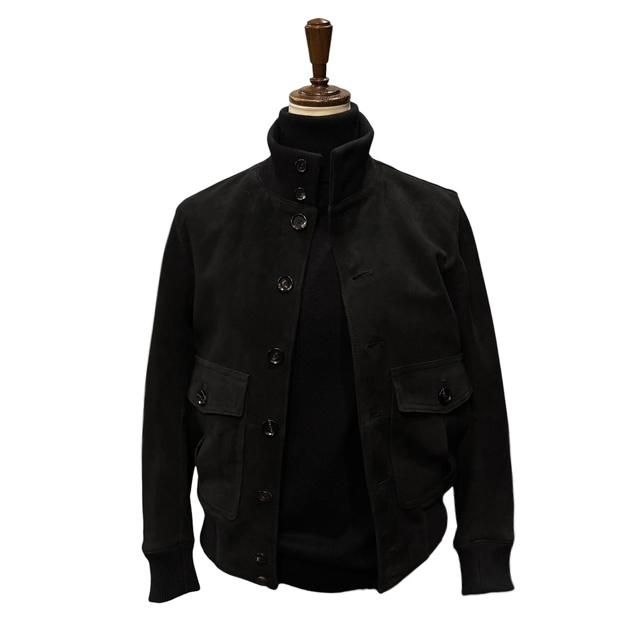 滑らかさと柔らかさを持つ山羊革を薄く鞣し、限りなくパーツ数を減らし革そのものの特徴や品質を活かしつつ、縫製に於いても丁寧に施す事によって、全体としてこのジャケットには革の持つ本来のしなやかさを体感する事が出来ます。